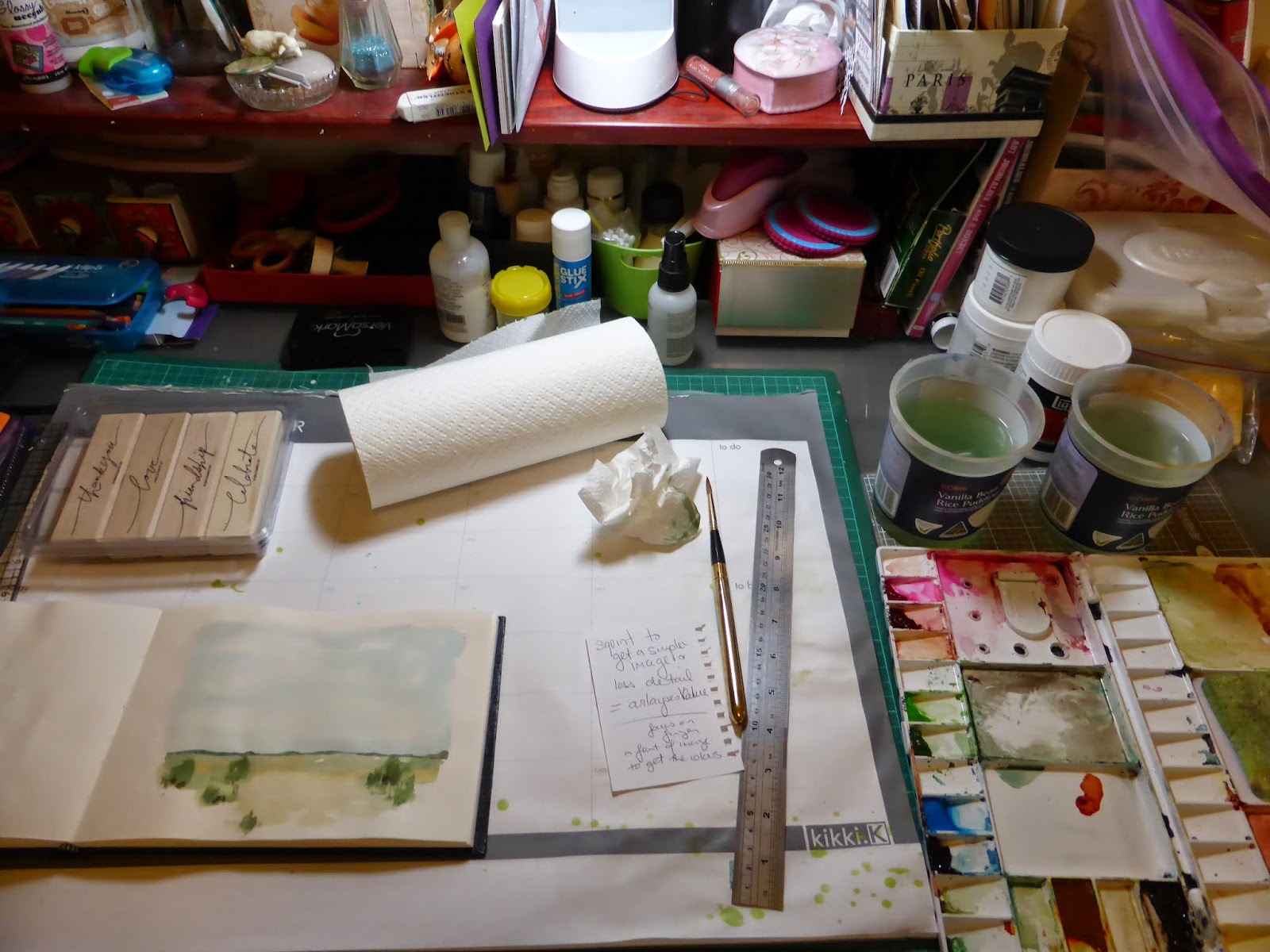 Happily getting my sketch kit ready for tomorrow when I realised I still had time to do a final woyww post for 2014. Nothing terribly exciting. On the left is my sketchbook which I am using for the sketchbook foundation class, open at my handbag sketch/watercolour. The kit holds everything I need to take out for the day, paints in a tiny pallet, w/c pencils, brushes, micron pen, scissors and tissues. Only thing missing is a little bottle of water.